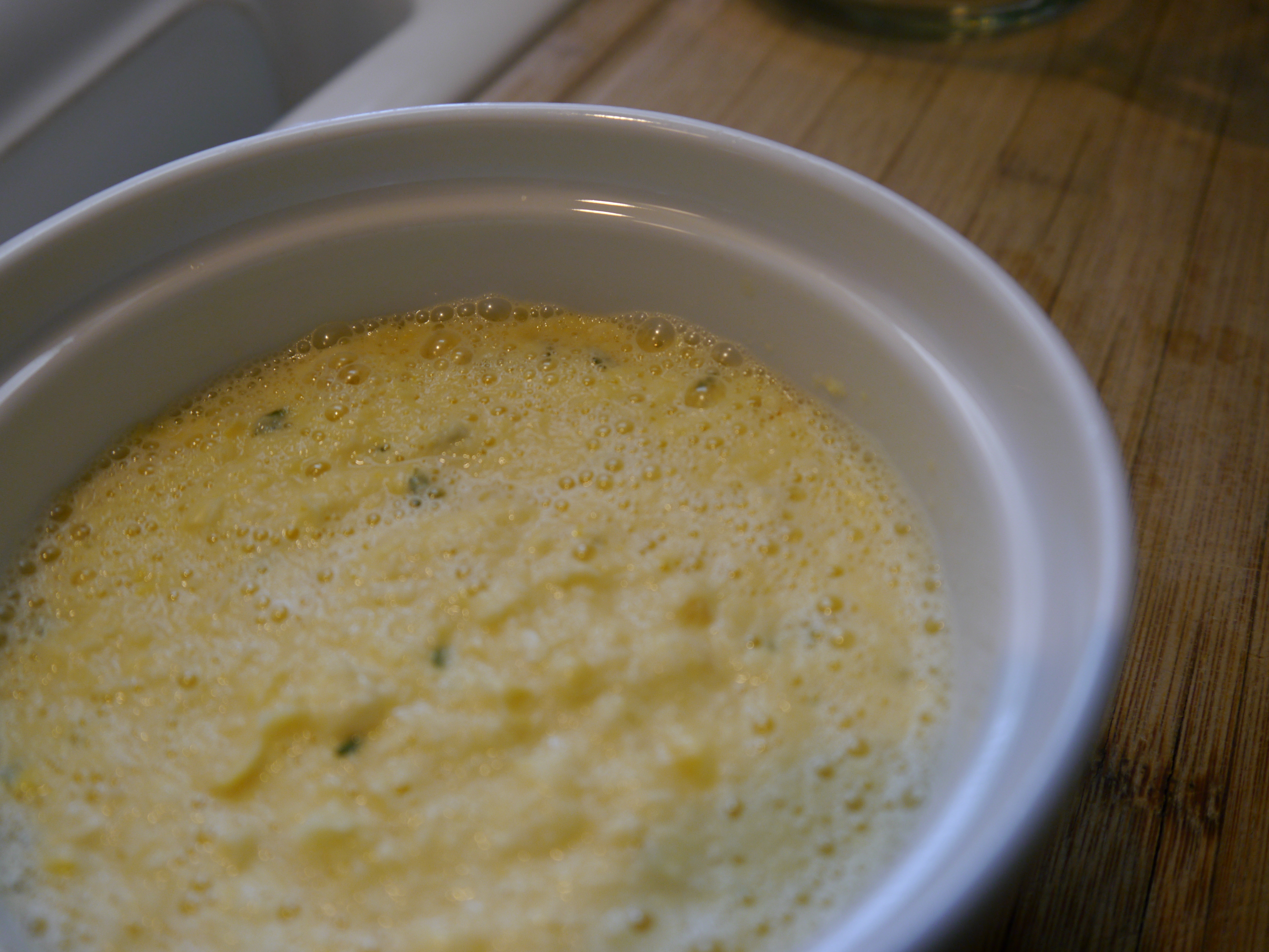 This is the point where I found myself with a few extra minutes and wanting something more out of this meal.  I decided to make a very quick Truffle Cream Sauce.  I am a chronic anti-measurer in the kitchen, so this is more of a ‘method’ than an exact recipe; you might find yourself needing a little more liquid than I suggested.  The addition of the sauce is COMPLETELY optional.  It was not necessary at all, but truffles and corn are delicious together and it really did help to tie it all together.