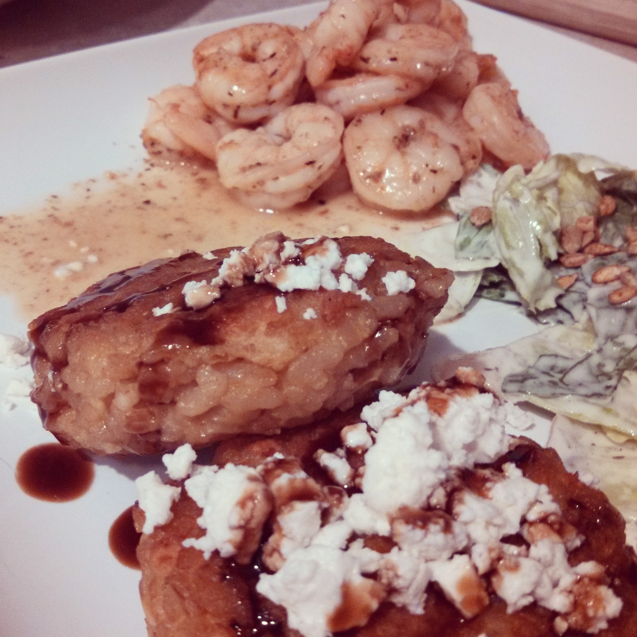 What to do with leftover Risotto? Risotto Cakes with Sautéed Shrimp.