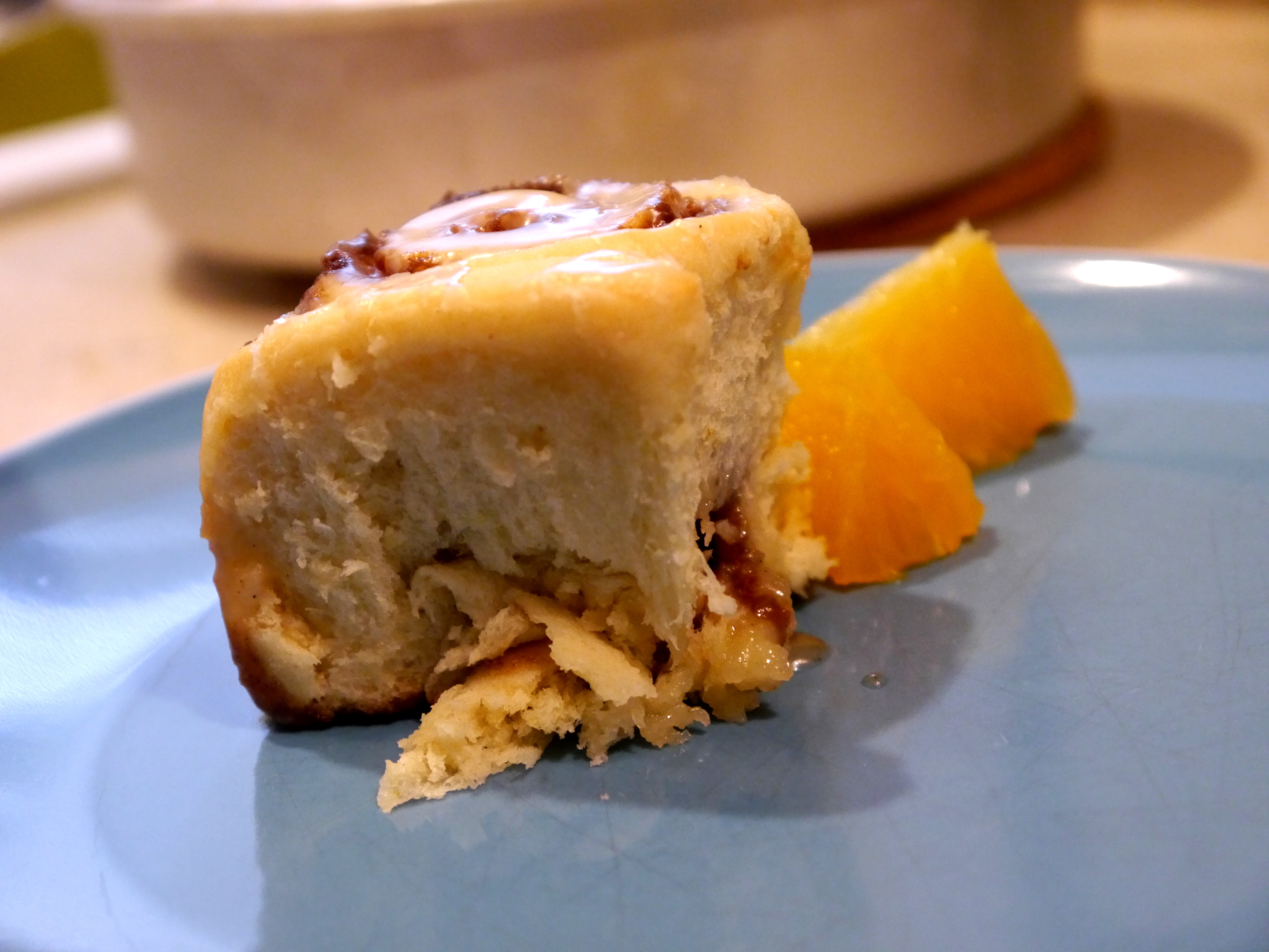The biggest chance for failure here is in the cutting of this roll. You need to cut this roll into twelve slices. The easiest way to accomplish this without squishing the slices is with thin string of some sort. I know a lot of people who use dental floss for this (everyone has it in their house). I like to use fishing line (shocking, I know) or plastic embroidery thread. Just mark on the roll where you want to slice and simply slip the string under the roll at the desired spot, tie a simple knot (like in the first step of tying your shoes), and pull. No squishing. Perfect every time.